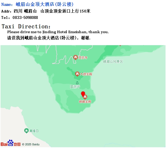 Jinding Hotel Emeishan(Woyun Building) is located at the top of the world cultural and natural heritage Mt. Emei, Jinding, 3079 meters above sea level, floating on the sea of clouds, hidden in the fairy fog.